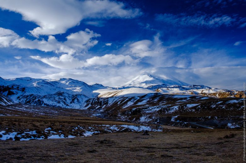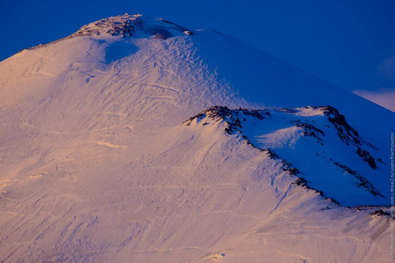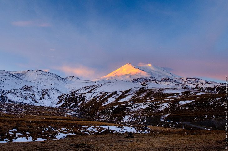 Стратовулкан на Кавказе Эльбрус — самая высокая горная вершина России и Европы. И он встречает рассвет…