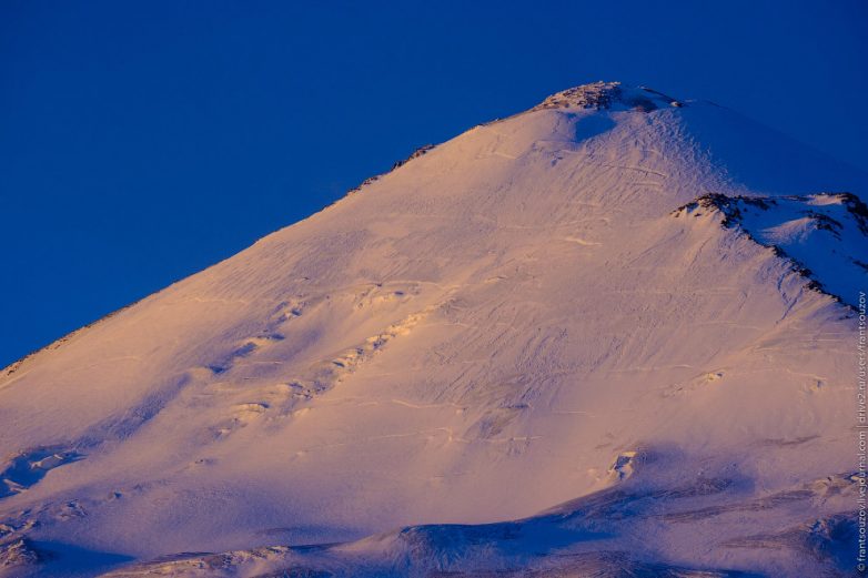 …и посмотрим на Гору в деталях. Снежные склоны на рассвете оказались невероятно фотогеничными.