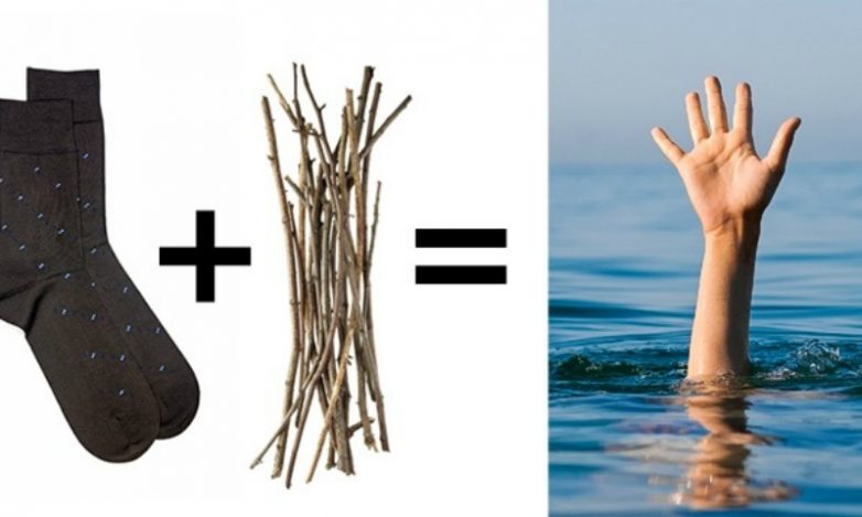 Тонущему человеку пригодиться любое подспорье, чтобы продержаться на воде до прибытия помощи. Если под рукой больше ничего нет, снимайте носки и набивайте их ветками, поплотнее. Кидайте импровизированный поплавок в воду — долго он не протянет, но необходимую передышку обеспечит.