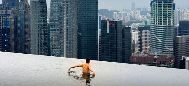 Бассейн на крыше роскошного отеля предоставляет посетителям сразу две отличные возможности: во-первых, искупаться с головокружительным видом на небоскребы Сингапура, а во-вторых – сделать фотографию «на краю пропасти». Разумеется, перевалиться за край бассейна невозможно благодаря невидимому со сторону техническому выступу, но фотографиям это не мешает. Правда, к сожалению, искупаться здесь дозволено лишь постояльцам отеля, цены в котором крайне кусаются: от 350 долларов за ночь.