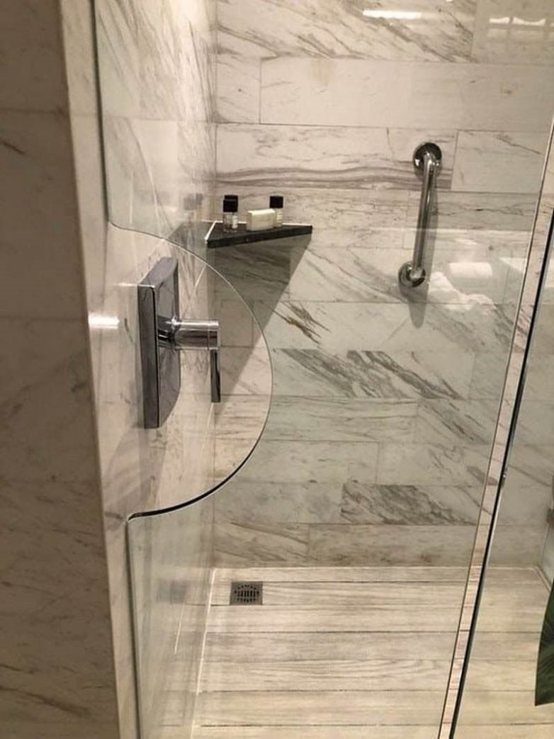 Мелочь, а приятно: смеситель находится напротив самого душа, чтобы вы не намокли, пока пробуете водичку