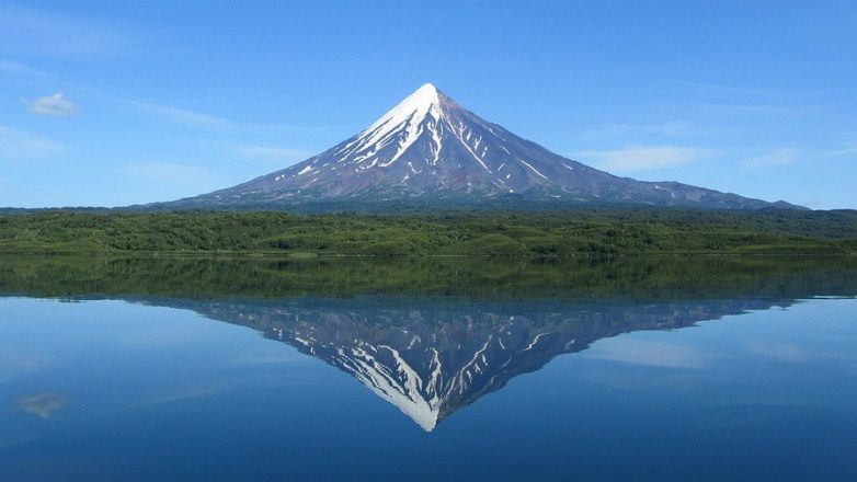 Кроноцкий вулкан расположен в одноименном национальном парке на Камчатке и сильно напоминает гору Фудзи. Кроноцкий национальный парк — один из старейших естественных заповедников в России. Здесь находится множество гейзеров и горячих источников, Долина гейзеров входит в число Семи чудес России. Одно из самых крупных гейзерных полей в мире и единственное в Евразии.