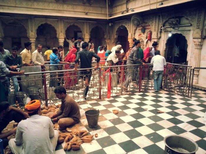 Паломники храма верят, что их умершие родственники воплотились в крыс и в следующей жизни непременно возвратятся в этот мир уже людьми. Посетители из всех уголков Индии несут в храм свои подношения.