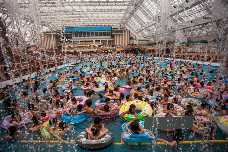 Если вы решите заглянуть летом в японский аквапарк «Tokyo Summerland», велика вероятность того, что вы вряд ли сможете обнаружить хотя бы в одном из его бассейнов воду, только огромную массу людей.