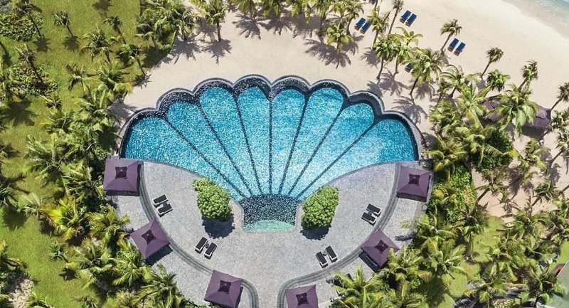 Бассейн отеля JW Marriott Phu Quoc Emerald Bay Resort & Spa на вьетнамском пляже Хем не только выполнен в форме жемчужной раковины, но и сияет жемчужным блеском.