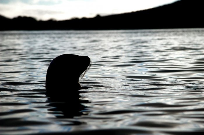 Юный морской львенок знакомится с человеком в Байя-Фе, остров Санта-Крус.