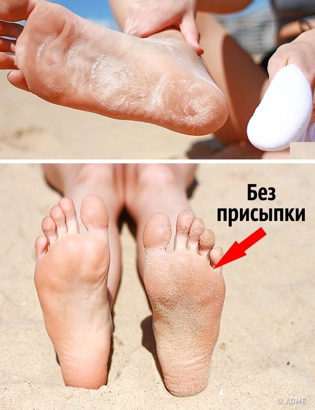 Из-за прилипшего к ногам песка после пляжа сложно надеть какую-либо обувь. Чтобы избавиться от песчинок, используйте детский тальк.