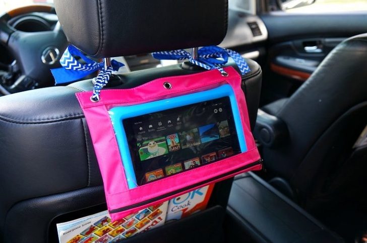 Любителям посмотреть мультфильмы в дороге придется по душе идея превратить обычный пенал в удобный держатель для планшета. Для этого нужен только пенал для карандашей с прозрачной стенкой и пара ленточек. Пенал можно заменить на обычный файл для бумаг — не так эстетично, но смысл тот же. А самые предприимчивые родители могут превратить в держатель для гаджета даже собственную кофту с капюшоном.
