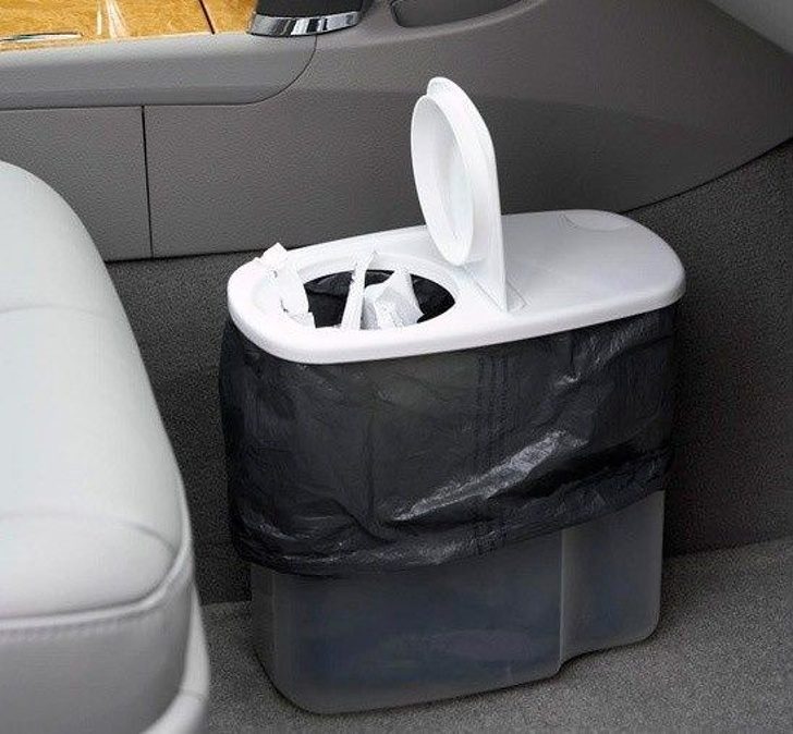 В путешествии с детьми вам не избежать появления кучи фантиков, крошек и бумажек, так что походная мусорка — настоящая находка для тех, кто в дороге. Чтобы не заморачиваться с пакетами, возьмите обычный кухонный контейнер с крышкой, который обычно используют для макарон, поместите в него пакет, и — вуаля — мусорка с крышкой готова.