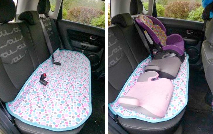 Маленькие путешественники всегда сорят и проливают какие-нибудь сладкие напитки, так что лучше заранее позаботиться о сохранности сиденья. Вы можете купить готовый чехол или сделать его сами.