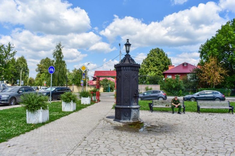 По центру – площадь с раскрытой мостовой (не вошло в кадр) и старинная колонка:
