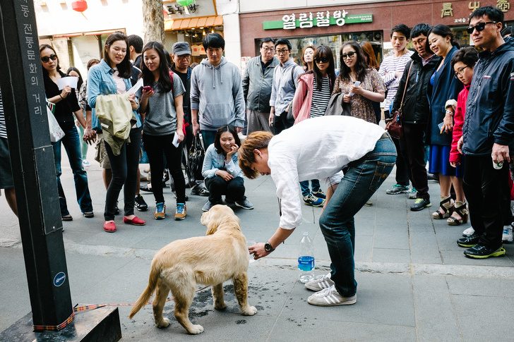 Золотистый ретривер привлек внимание корейцев только потому, что содержать такую большую собаку в городе для них непривычно