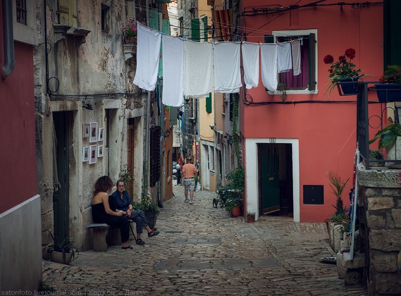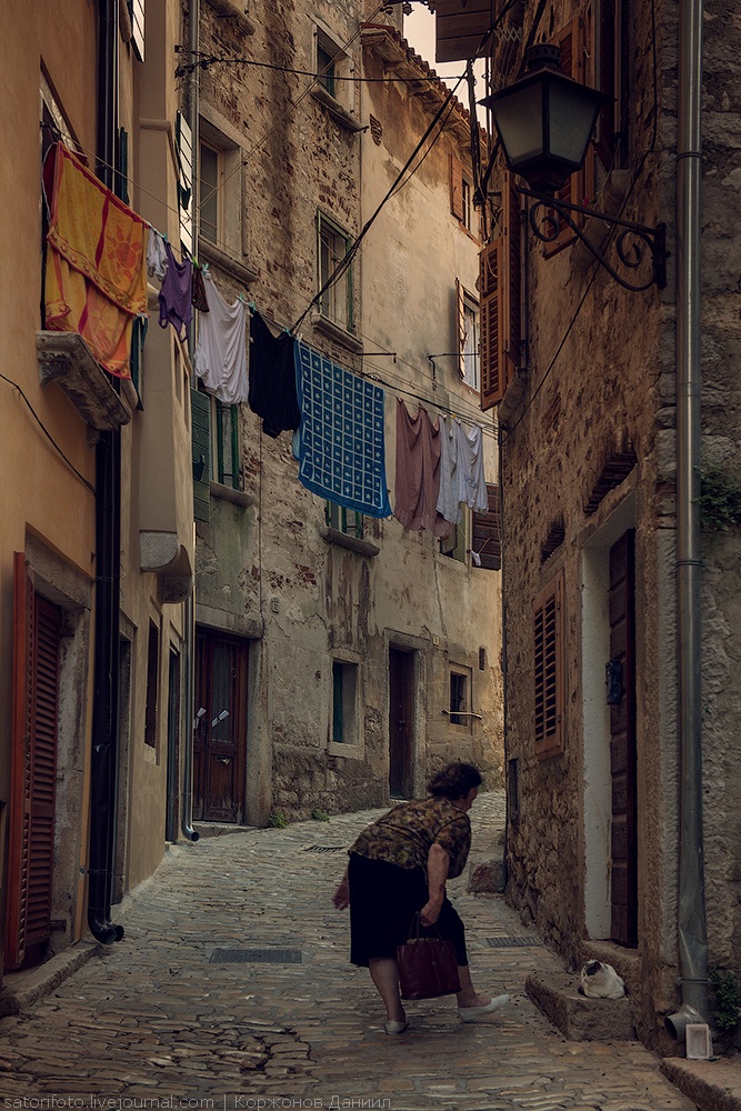 Но довльно об истории! Просто походим по улицам, посмотрим на местный колорит. Ровиньцев вообще часто мучают туристы, наводя свои фотоаппараты. Многие люди уже привычными движениями пытаются отвернуться, но момент всё равно можно поймать.