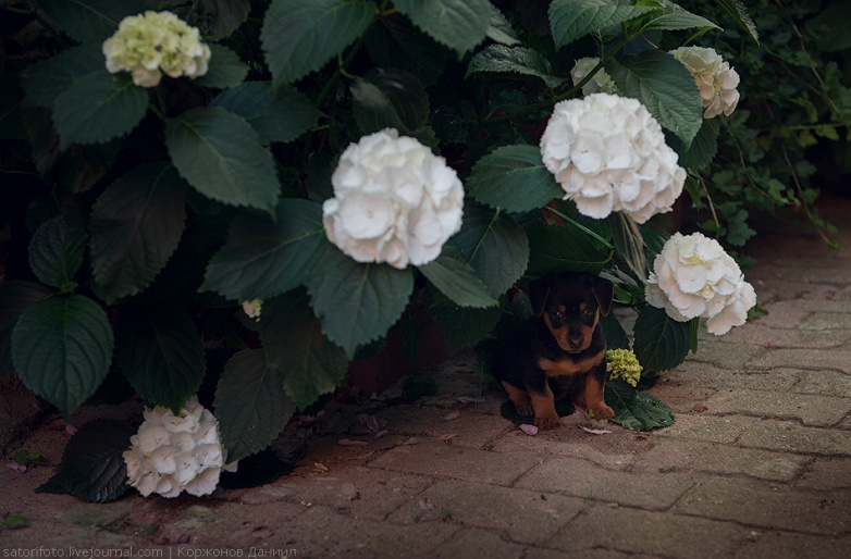 Некоторые очень любопытные :) Этот товарищ так со мной подружился, что стал другом на всю жизнь, никак не хотел от ноги отходить. Пришлось хозяину его в дом оттаскивать. Скулил отчаянно, почти слёзы появились ;)