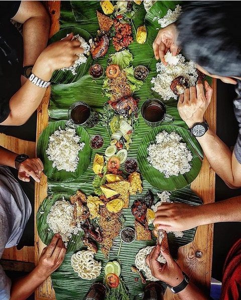 Похожие традиции встречаются и в других жарких странах, но в некоторых частях Индонезии банановый лист служит своеобразной тарелкой не для одного человека, как например в Индии, а сразу для нескольких. Такой вид застолья называется «ботрам» (botram).