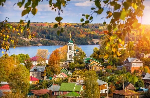Плес напоминает загородный дворянский салон: все вокруг изящно и благородно, а за чаем встречаются сплошные поэты и художники. Творческие люди ценят Плес еще со времен Левитана, так что тут запредельная концентрация музеев и картинных галерей, а еще милых сувенирных магазинчиков. Деревянные дома с резными наличниками и купола церквей — тоже как с картинки. Но главная декорация — природа. Городок стоит на холмах над Волгой и как лоскутным одеялом укрыт зеленью берез и яблонь — хоть сам бери кисти и краски и пиши второй «Вечер. Золотой Плес».