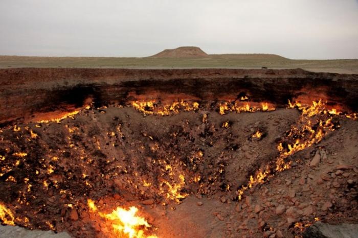 Это место на самом деле пугает своей мощью, ведь многие тысячи тонн огненной лавы, исходящей из недр Земли, низвергаются в кипящий кратер, разверзшийся прямо посреди пустыни Каракум. Диаметр этого огненного колодца – 60 метров, а его глубина достигает 20 метров. По своей сути, Дарваз – это ничто иное, как газовый колодец, однако история его открытия весьма интересна. Дело в том, что несколько десятилетий назад ученые-исследователи бурили здесь скважину для добычи газа, но в результате совершенно неожиданно открылась эта огромная пропасть, испускающая природный газ, который, к слову сказать, пришлось специально поджечь.