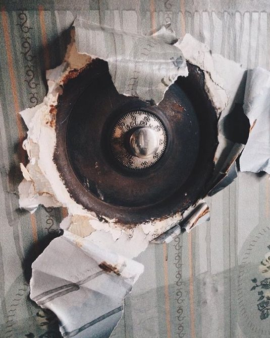 Стенной сейф в расселенной коммуналке на Большом проспекте Петроградской стороны от американской фирмы Lowrie S&L.