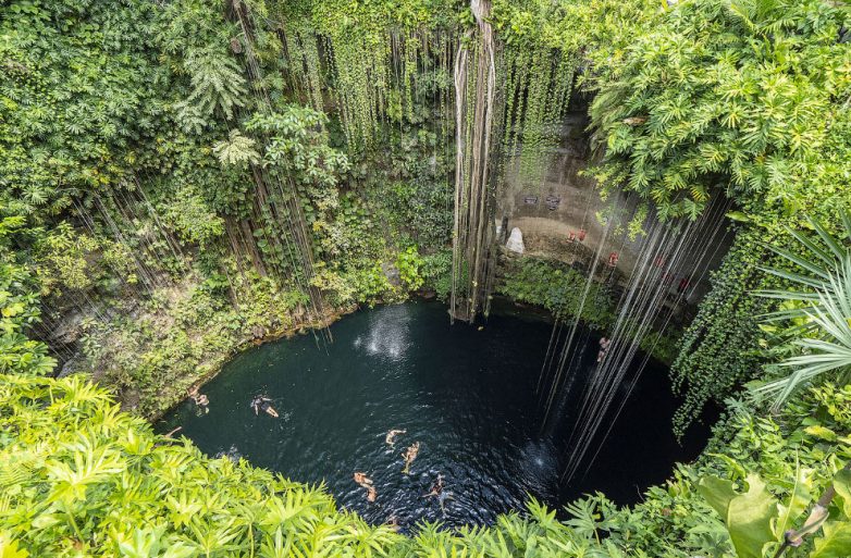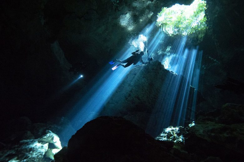 Наверное самым сильным моим впечатлением от Мексиканского полуострова Юкатана будут сеноты. Сенот — это пещера, углубление, впадина, часть ее обязательно заполнена водой. Они бывают очень разными — это и замкнутые пещеры и просто небольшие впадины-бассейны (Фото Donald Miralle):