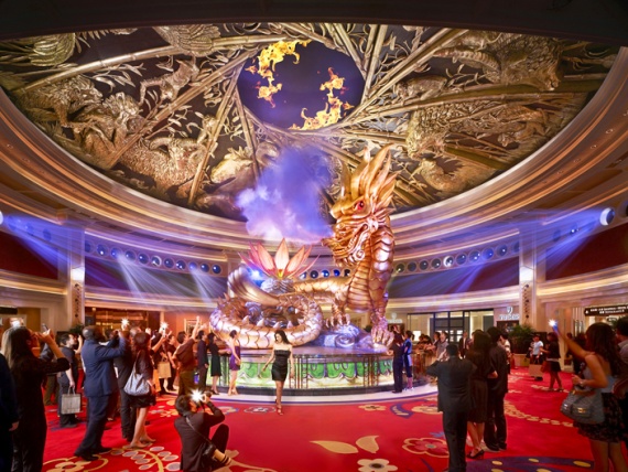 Лобби отеля, золотой дракон фортуны.