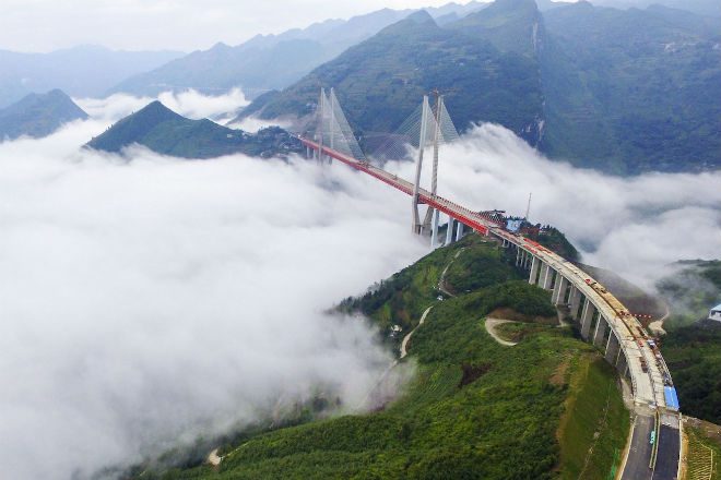 Далеко на юго-западе Китая в 2016 году возвели поистине циклопическое сооружение. Мост через реку Бэйпаньцзян уже несколько лет занимает первое место в числе самых высоких в мире. Невероятная конструкция уходит в небо на колоссальные 565 метров.