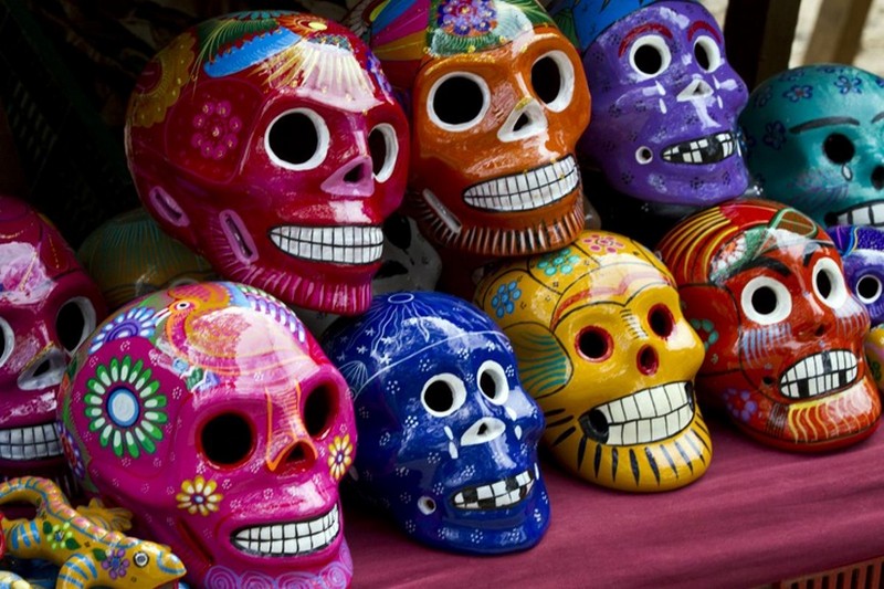 В сувенирных лавках Мексики продаются скелеты и черепа в разнообразном исполнении.