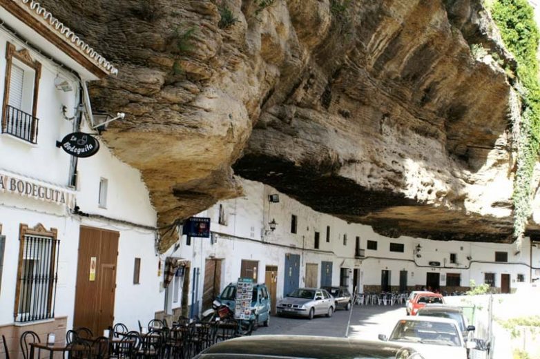 Испанский город Сетениль-де-лас-Бодегас — пожалуй, один из самых удивительных уголков Андалусии. Главная его достопримечательность — нависающие над домами и улицами грозные многотонные своды скалы. Первая мысль, возникающая при взгляде на такую оригинальную застройку: «А вдруг обвалится?»