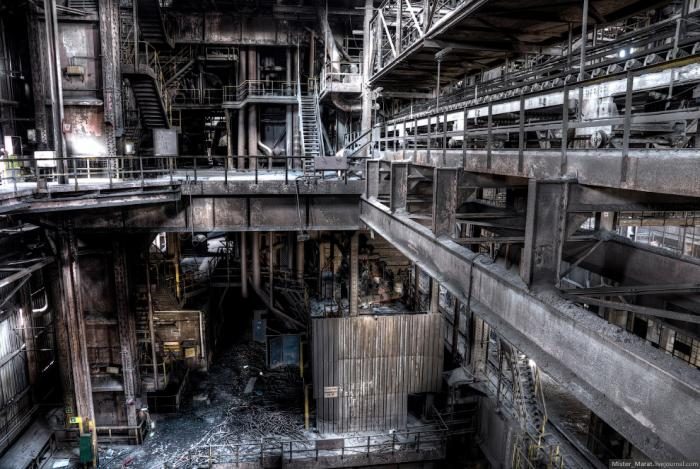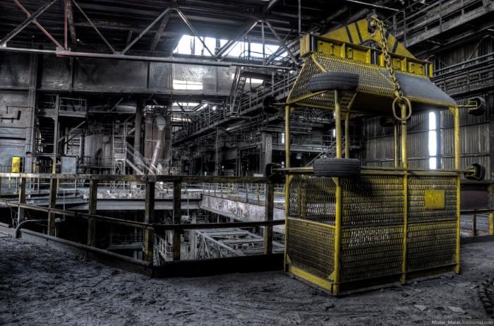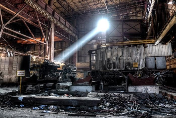 Первое место в сегодняшней подборке — большой металлургический завод, построенный в 1960-х годах. Самые интересные цеха оказались за двойным забором с колючей проволокой. Более того, он примыкал к еще действующему заводу, а потому территорию часто объезжала охрана по периметру. Понадобился почти час, чтобы преодолеть первый периметр, выждать нужный момент для финального марш-броска, и затем пробежать 200 метров до забора с колючкой. В тот момент мы были видны со всех сторон. Изрядно поцарапав себя и одежду, мы оказались внутри, и я в очередной раз за поездку потерял дар речи. Трудно судить о размере этого места по изображениям. Оно настолько огромное, что сюда бы поместилось несколько десятков футбольных полей с танкерами в придачу с большим запасом. Я провел здесь больше времени гуляя, чем фотографируя. Честно признаться, я никогда не бывал в настолько масштабных заброшенных местах и поначалу даже растерялся — не очень было понятно, как организовать прогулку по заводу — хотелось посмотреть все!