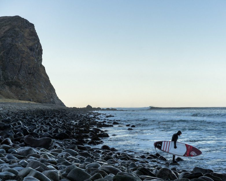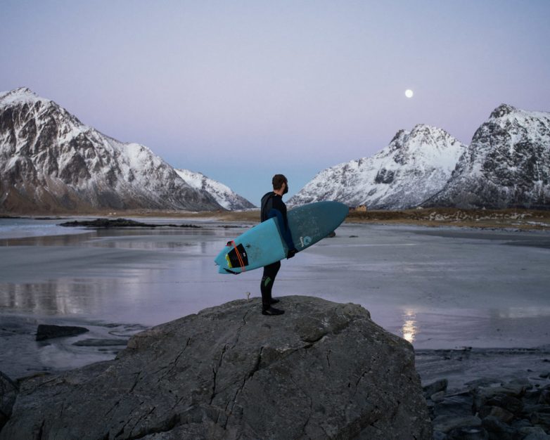 Перед очарованием скандинавской природы устоит не каждый. Прохладное спокойствие, грациозность фьордов и северной природы безустанно привлекают туристов и вдохновляют творцов. Почему бы не заняться чем-нибудь необычным посреди заснеженных вершин? Например, серфингом.
