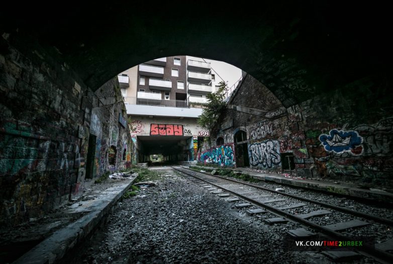 Железная дорога пересекает более десятка подземных тоннелей разных годов постройки. В нескольких местах над железной дорогой возвышаются свежевозведенные дома. На фото как раз один из таких «калпаков».