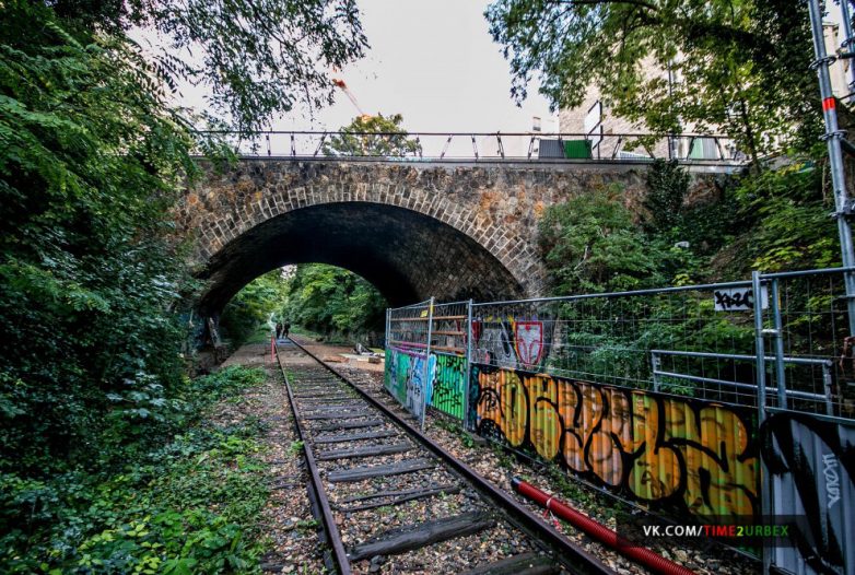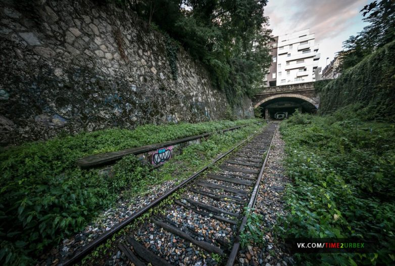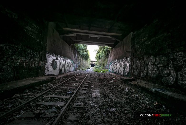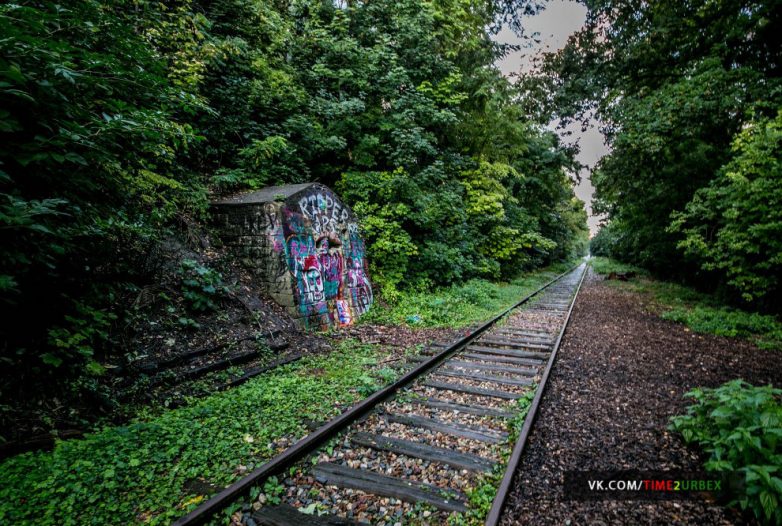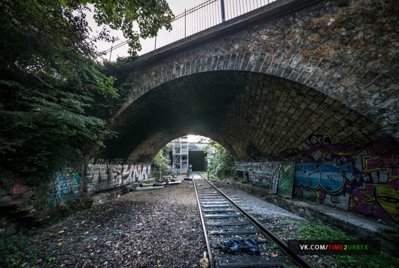 Раньше здесь была станция — по бокам сохранились оригинальные старинные лестницы.