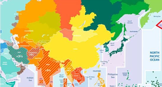 Границу между этими враждующими странами в пустыне Тар можно увидеть с низкой околоземной орбиты благодаря освещенным пограничным ограждениям и системам сигнального осветительного оборудования протяженностью более 1600 километров. Этот уникальный феномен впервые был зафиксирован Международной космической станцией и опубликован НАСА в 2011 году.Несмотря на обширные размеры, территория Китая находится в одном часовом поясе.
