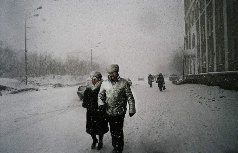 «Через центр города проходит проспект Ленина. Большинство театров, кинотеатров и других культурных заведений закрыты, но несмотря сильный снегопад, жители прогуливаются по 6-километровому проспекту».