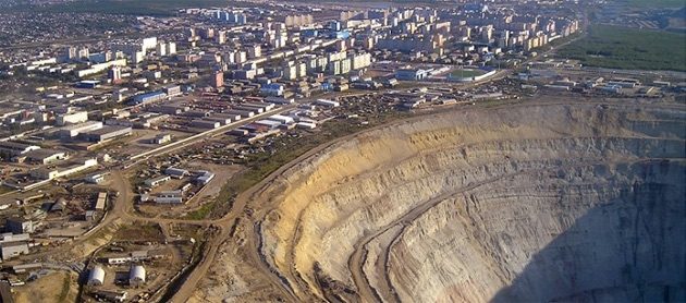 Кимберлитовая трубка «Мир» представляет собой карьер глубиной 525 метра и диаметром 1,2 километра, что делает его одним из самых больших по величине искусственно созданных отверстий на планете. До 2001 года добыча алмазов велась открытым способом, но после обнаружения алмазов на глубине более 1 км. было решено построить подземный рудник. Без рабочих и верениц техники пустующий карьер стал походить на вселяющую страх дыру гигантских размеров, в которую бы запросто мог поместиться поселок.