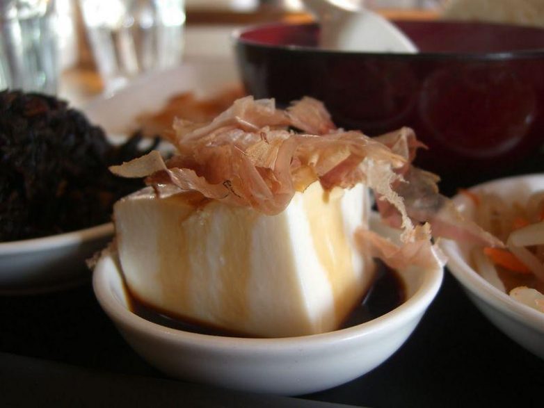 Япония. Тофу с рыбой и рисом, смоченным в соевом соусе.