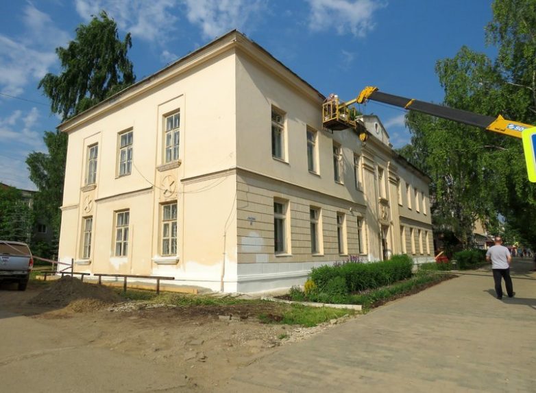 Поначалу это был одноэтажный дом с мезонином. Почти такой же, как стоящее с другой стороны парка 2-классное училище (1840), только каменный. Подобные здания тогда слагали ансамбль вокруг будущего парка Кривощёкова. В 1861 году крепостничество кончилось, но созданный Строгановыми комплекс учебных заведений, администраций и базаров остался. Для коми-пермяков Кудымкар стал местом, куда ездили учиться, торговать, искать правды. Оплотом цивилизации посреди пармы: