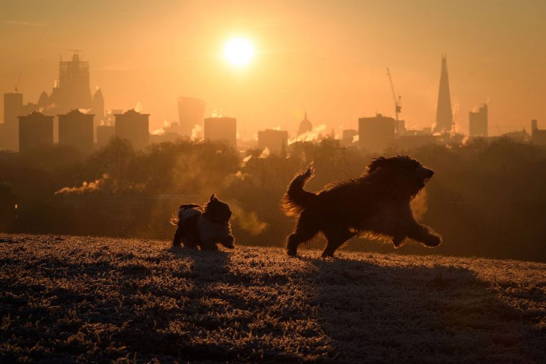 Морозное утро во Франкфурте. (Фото Michael Probst):