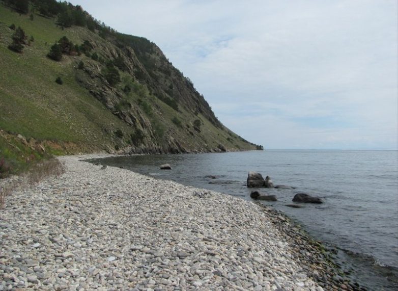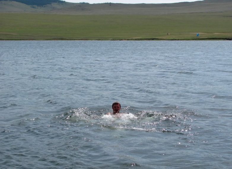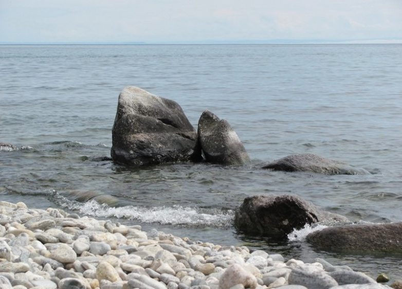 После обеда возвращаемся к окрестностям мыса Хоргой. Здесь есть местечко с очень тёплой водой — отделенный от Малого Моря галечной косой байкальский сор (сор – это закрытый, мелководный, обычно хорошо прогреваемый залив глубиной не более 7 метров, образующийся при отчленении прибрежных мелководий или заливов движущимися береговыми наносами, которые формируют косы и пересыпи) имеет малые глубины и летом хорошо прогревается. Даже в ветреную погоду здесь милое дело искупаться!