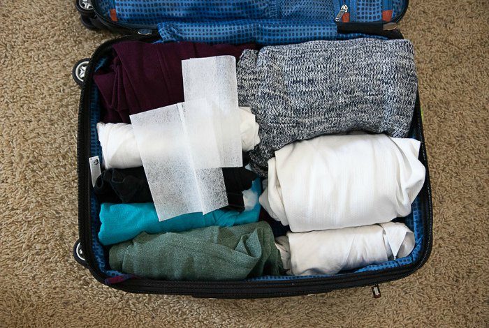 Используйте папиросную бумагу, чтобы бережно довезти мнущиеся вещи. Один лист нужно положить под вещь, а другой поверх.