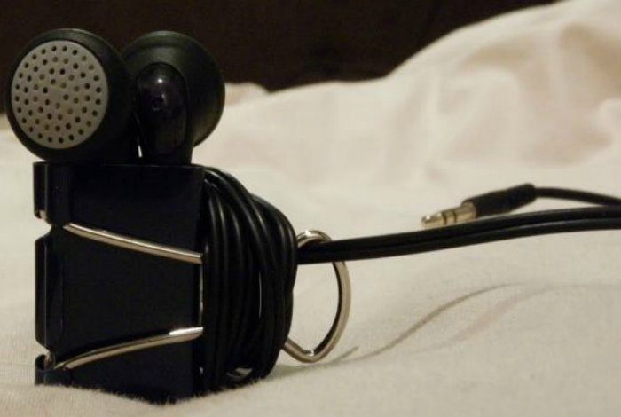 Намотайте наушники на биндер и прикрепите к своей куртке или пиджаку. Самодельный зажим такого типа не даст потерять наушники во время регистрации или посадки в самолет.