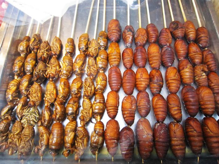 Скажите, вот вы любите жареный арахис? А жители Южной Кореи за обе щеки уплетают жареных куколок шелкопряда. Те, кому посчастливилось попробовать этот деликатес, утверждают, что куколки хрустящие и представляют собой нечто среднее между чипсами и семечками.