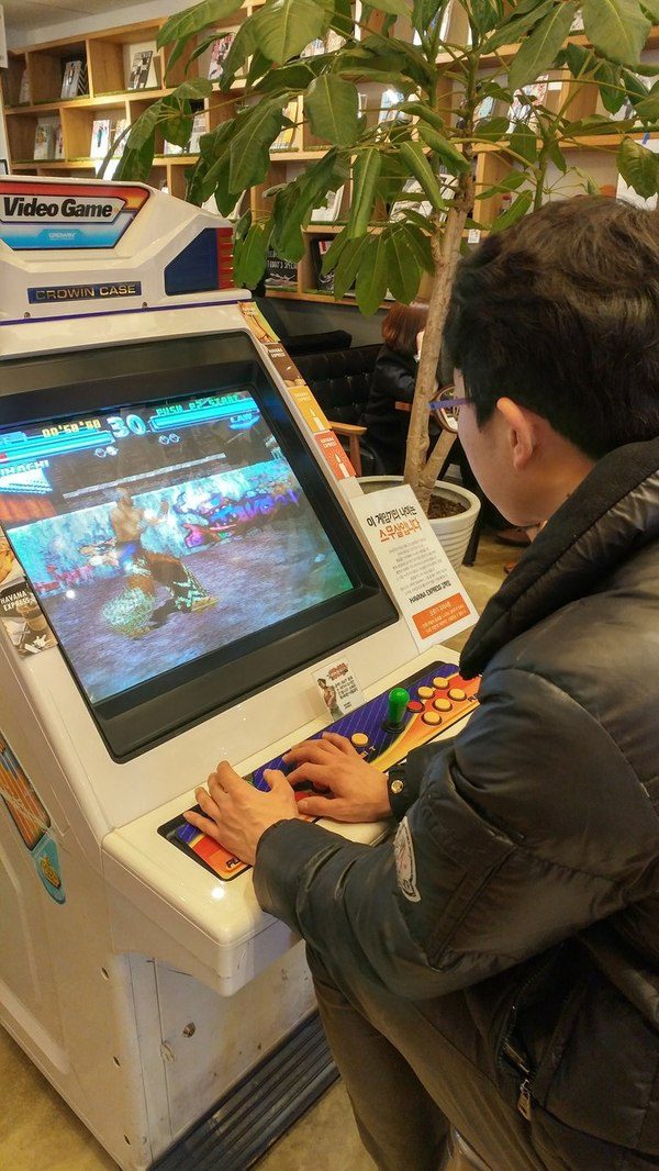 В кафе и кофейнях часто стоят настольный футбол и вот такие олдскульные автоматы со старыми играми.