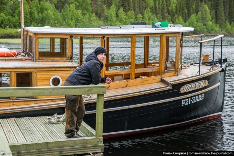 Симпатичное судно, стоит отметить. Наверное, в теплую погоду здорово на нем бороздить просторы озера. Но по моей одежде, думаю, понятно, как тепло было на улице. С температурой прогноз не ошибся — всё время, проведенное здесь, было очень холодно, а это, между прочим, середина июня. Хотя, чего это я. Я и в июле на Кольском надевал куртку и шапку.
