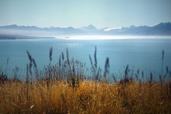 Волшебно-бирюзовые воды новозеландского озера Пукаки идеально сочетаются с суровой растительностью — желтоватой травой. Это необыкновенное сочетание расположено на совершенно маленьком кусочке земного пространства.