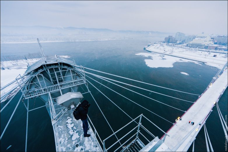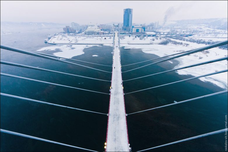 Вантовый пешеходный мост на остров Татышева через Енисей.