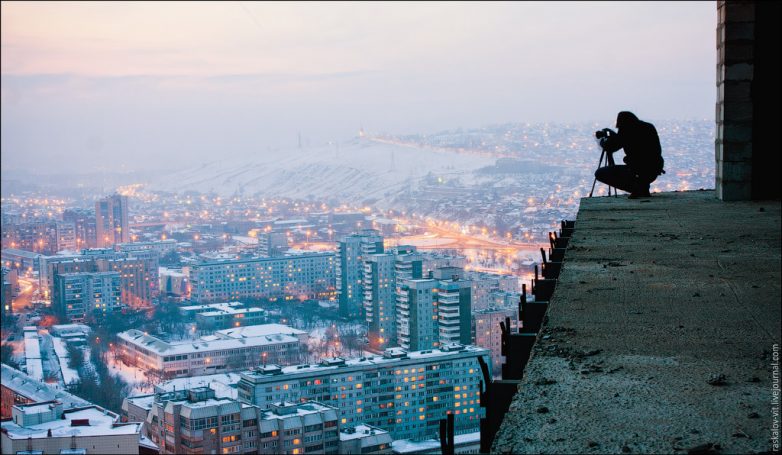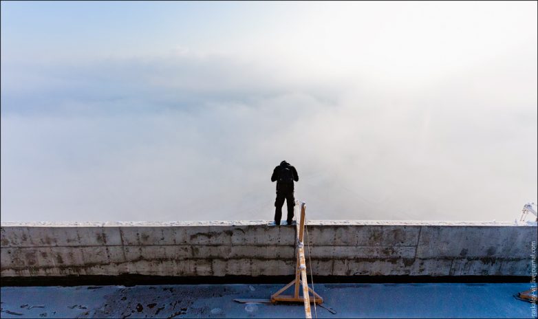Из-за тумана исходящих от Енисея с крыши ничего не было видно, и мы в прямом смысле оказались выше облаков.