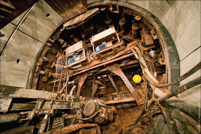 Остатки разобранного щита. Встал он на отметке 540м от начала проходки. Дальше за досками земля.
