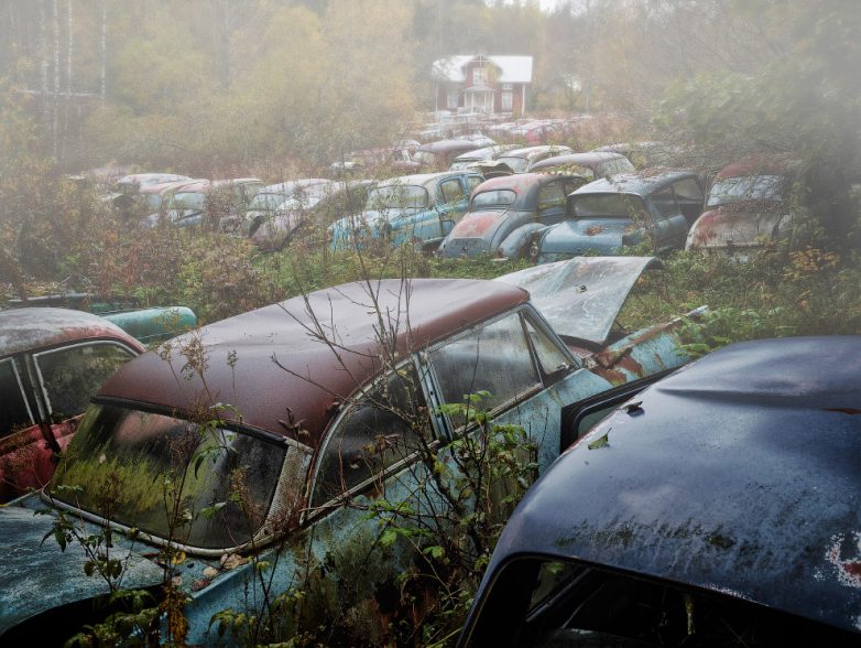 1. Кладбище машин в шведском парке скульптур, здесь находится около 50 ретро-автомобилей, 2012 год. (Фото Dieter Klein):