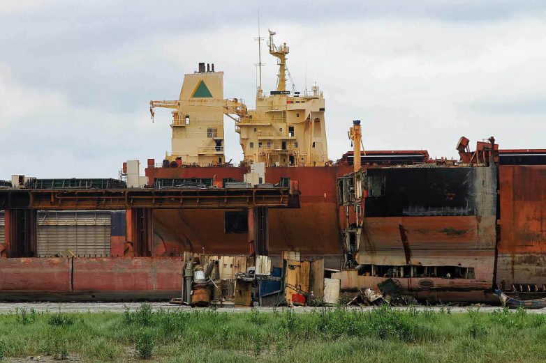 Специально нанятые люди сажают корабли на мель, после чего местные работники вручную вычищают внутренности корабля. А затем при помощи кувалд, клиньев и паяльных ламп разбирают обшивку.