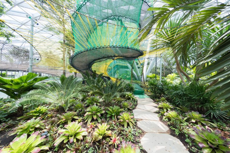 По парку под стеклянным куполом можно будет не только гулять, но и лазить по натянутым там сетчатым конструкциям — прекрасное развлечение для детей и взрослых.